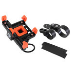 DPC243-BK スマートフォンマウント■5点固定でスマートフォンをがっちりホールド タテ・ヨコに取り付けられた5点のラバー素材のシムがスマートフォンをしっかり固定します。■スマートフォンの向きをらくらく変更 工具を使うことなく、簡単にスマートフォンの向きをタテ・ヨコ90°に変えることが可能です。 ■取り付け位置 付属のシムを使うことでほぼすべてのハンドル径に適合します。(φ22.2-31.8mm)またヘッドセットに取り付けができ、限られたハンドルスペースを圧迫しません。 ■取り付け可能寸法縦:95 mm〜150 mm / 横:56 mm〜87 mm /厚さ10mmまで と多くのスマートフォンサイズに適合します。■スマートフォン かんたん設置2点のラバーシムを取り外すだけでかんたんに設置、取り外しができます。■製品仕様カラー ブラックxオレンジ 材質 ABS樹脂xラバー 適合スマートフォンサイズ W: 95〜150mm H: 56〜87mm D: 〜10mm 適合ハンドルバー径 Φ22.2〜Φ31.8mm 重量 57g(ホルダー、マウント重量のみ) ■ご注意事項•走行中のスマートフォン操作は危険ですので絶対にしないでください。•走行前はスマートフォンがマウントに、しっかり固定されていることを確認してください。•各数値は計測方法により異なります。•製品等の色は、ご使用になるモニターや、その設定によって若干の違いが発生する場合があります。•製品改良のため予告なく価格、色、デザイン、仕様等を変更する場合があります。