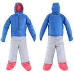 上半身、下半身、足部分を完全に切り離すことができます。切り離したパーツはそれぞれジャケット、防寒パンツ、防寒用インナーシューズとして使用可能。 〈実用新案登録済〉