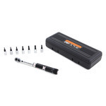愛車のさらなるカスタムを可能にするオールインワン・トルクレンチ DTK199-BK■トルクレンチ使用にあたっての注意点トルクレンチの使用にあたっては正しい使用方法、マニュアル記載の注意事項や、以下の注意点をよくお読みの上、ご使用ください。正しく使用されないと、本製品あるいは使用部位の故障、破損の原因となります。■使用にあたっての注意点・設定トルクは必ず各部パーツに表示されている指定トルクに従ってください。・トルクレンチに荷重をかけるときは、出来るだけゆっくりと力をかけてください。特に低い設定トルク値の場合は注意してください。・設定トルクに達し、レンチヘッドの傾きや音、感触を感知した場合は力を加えるのをやめ、それ以上レンチを回さないでください。■製品特徴 ■トルクレンチ、交換用ソケットを揃えたオールインワンセット オールインワントルクレンチは自転車メンテナンス、カスタムに必要なトルクレンチ本体と交換用ソケットを1セットにしたトルクレンチセットです。使用に必要な工具がひと通り揃っているので、手にしたその日から使用いただくことが可能です。 ■トルクの設定方法 トルクの設定はトルクレンチ本体下部にあるロックリングを操作することで調整することができます。主目盛り(赤色のライン)と副目盛り(ロックリング上部)の数値を合計することで、現在の設定トルクを把握することが可能です。※所定のトルクは自転車の記載等を確認してください。 ■設定トルクを音や感触でお知らせ 設定したトルク値に達するとトルクレンチのヘッド部分が傾き、カチッという音やその感触が伝わります。設定トルクに達したことを使用者に伝えるための機能を採用しています。※初めての使用時には必ず数回テストを行い、感覚を覚えてください。※トルクレンチ使用の際は、必ずゆっくりと力を加えてください。ヘッドの傾き、音、感触を感知した際は、力を加えるのをやめ、それ以上力を加えないでください。 ■幅広いサイズに対応した交換用ソケット オールインワントルクレンチは2・2.5・3・4・5・6Nmの六角レンチソケット6個を標準装備しています。ヘッド部分のソケットを交換することで、幅広いサイズのボルトに対応することが可能です。またT型トルクスねじに対応したT25の交換ソケットも付属しています。 ■専用収納ケース トルクスレンチ本体と交換用ソケットを全て収納できる専用の収納ケースを付属。使用しないときはコンパクトに収納することができます。また、トルクレンチ使用時には使わないソケットをまとめておくことができるので、ソケットを無くす心配も軽減します。 ■製品仕様 材質 トルクレンチ、交換用ソケット:スチール専用収納ケース:プラスチック 交換用ソケットサイズ 2mm/2.5mm/3mm/4mm/5mm/6mm/T25 対応トルク範囲 3〜15Nm 重量 約520g ご注意事項 •各数値は計測方法により異なります。•製品等の色は、ご使用になるモニターや、その設定によって若干の違いが発生する場合があります。•製品改良のため予告なく価格、色、デザイン、仕様等を変更する場合があります。