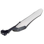 半透明のシート状フェンダーをスナップボタンでアームに固定する形式のMTB用ワイド型リアフェンダー。