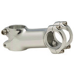 MS-19スッキリとしたルックスのアルミ鍛造ステム。□仕様□・素材:#6061 アルミ鍛造・突き出し長:100mm・バークランプ径:φ31.8mm・コラムクランプ径:φ28.6mm・アングル:84°/96°・スタックハイト:40mm・重さ:125g(80mm)・カラー:シルバー