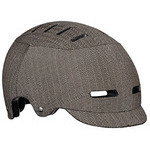 クラシックテイストのファブリックカバーを施したカジュアル デザイン ヘルメット。 前傾時に視野を妨げないよう、バイザー部分が短くデザインされています。