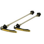 CNC クイック レリーズセットスリムでシャープなラインのアルミ切削加工。前後ホイール用クイック2点セット。□仕様□・フロント用、リア用の2点セット・スチールシャフト・対応エンド幅: フロント:100mm リア:130mm・重さ:69g・カラー:ブラック