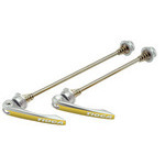 CNC クイック レリーズセットスリムでシャープなラインのアルミ切削加工。前後ホイール用クイック2点セット。□仕様□・フロント用、リア用の2点セット・スチールシャフト・対応エンド幅: フロント:100mm リア:130mm・重さ:69g・カラー:シルバー