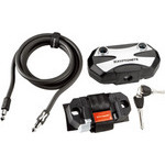 その上に脱着可能なロッキングヘッドをセットし、上面の穴にケーブルを差し込んで側面の鍵で施錠します。