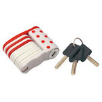 マイクロ フォールディング ロック 型番: AG40-WRカラー:ホワイト ・浸炭焼入済 鋼鉄プレート + 樹脂コーティング・4面ディンプルキー 3ヶ付属・使用時 : 400mm・収納時 : L67 x W56 x H23mm・250g
