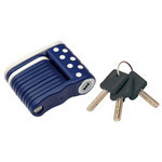 マイクロ フォールディング ロック 型番:AG40-NDカラー:ネイビー ・浸炭焼入済 鋼鉄プレート + 樹脂コーティング・4面ディンプルキー 3ヶ付属・使用時 : 400mm・収納時 : L67 x W56 x H23mm・250g