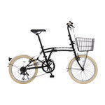 20インチ折りたたみ自転車 m6 BLACKフレームカラー :Onyx Black全長 1480 mm 折りたたみ寸法 840 × 830 × 390 mm 重量 17.2 Kg サドル高 760 - 940 mm ハンドル高 985 - 1020 mm ハンドル幅 525 mm タイヤサイズ 20 × 1.75 inch フレーム材質 スチール フロントフォーク材質 スチール 変速機 シマノ7段変速 ペダル 固定式ペダル VP-302 シフトレバー シマノ サムシフター 右:7段 フリーホイール MIN:14T × MAX:28T チェーンホイール 52 ブレーキ フロント、リア/Vブレーキ 最大乗車重量(積荷を含む) 75kg 未満 付属品 LEDフロントライト 工具 取扱説明書(保証書含む) シートポスト取付式ワイヤーロック タイダウンベルト スタンド(本体取付済) カゴ ナットキャップ×4 バルブ形式 英式バルブ(ウッズバルブ) 構成部品 フォーク スチール L:285mm リム アルミニウム 20φ×14G×28H スポーク スチール F:188mm , R:185/183mm フロントハブ スチール 14G×28H リアハブ スチール φ3/8φ×180mm×126mm×14G×28H ハンドルバー スチール W:520mm ハンドルステム スチール シートポスト スチール φ28.6 クランク スチール 165mm チェーン 1/2φ×3/32φ×106LINK ブレーキレバー プラスチック ボトムブラケット カップ&コーン式 ワイヤーロック ワイヤーロック φ12mm×1200mm LEDライト アルミニウム ホワイトLED 3PC