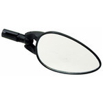 回転させてバーエンドに取付ける、視認性の高い横長フラットミラー。
