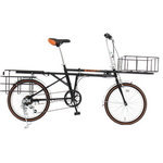 2WAYアウトドアバイク OB1-120運ぶために生まれた自転車。キャンプから災害時まで、様々なシーンで高い運搬力を発揮する折りたたみ自転車。兄弟ブランドDOPPELGANGER®[ドッペルギャンガー]の経験を活かしながら、様々なアウトドアシーンでの「運搬」に重視して生まれた折りたたみ自転車。前後に搭載された大容量のカゴにより、最大38L程の荷物の運搬が可能です。※1車が入れないキャンプ場での荷物の搬入時、災害時の荷物や物資の運搬など、多くの荷物を一度に運びたい時などに大活躍します。また、前後積載具は脱着可能で合計4つの運搬スタイルを1台で実現します。さらに、キャンプなどのアウトドアシーンのみならず、普段はシンプルな街乗りスタイルに容易に形を変える事ができます。異なる3つのモデルと合計5色のカラーがラインナップ。お好みや使用の目的に合わせて選択いただけます。□製品仕様□型番:OB1-120 カラー:ブラックオレンジ 全長:積載装置取付時:1740mm 積載装置なし:1620mm折りたたみ寸法:積載装置取付時:98×78×85mm 積載装置なし:98×52×67mm重量:積載装置取付時:21.5Kg 積載装置なし:16.8 Kg サドル高:770-980mmハンドル高:1000-1040mmハンドル幅:520mmタイヤサイズ:20×1.75inchフレームカラー:ブラック×オレンジ フレーム材質:スチールフロントフォーク材質:スチール変速機:シマノ7段変速 ペダル:固定式ペダルシフトレバー:シマノグリップシフター右:7段 フリーホイール:MIN:14T×MAX:28Tチェーンホイール:46カートンサイズ:900×500×720mmバルブ形式:英式バルブ(ウッズバルブ)ブレーキ:前:キャリパーブレーキ 後:バンドブレーキ最大乗車重量(積荷を含む) 積載装置取付時:70Kg未満 積載装置なし:75Kg未満最大積載重量:10kg付属品:【同梱品】前後カゴ前後キャリア付属品ボックス(工具、ナットキャップ×4、タイダウンベルト、取扱説明書(保証書含む)、組立説明書)