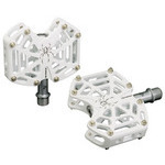 Dスパイダーペダル岩や地面などにぶつからないギリギリの幅広設計にしたスパイダーペダル。ロックセクションやアーバンフリーライドで威力を発揮します。□仕様□・素材:#6061-T6 アルミ切削ボディ・トリプルシールドベアリング・クロモリ9/16”アクスル・付属品:リフレクター、円柱型ピン32個・L90xW72xH20mm・重さ: 本体:315g/ペア ピン:32g/ペア・カラー:ホワイト