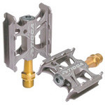 シュアーフットコンパクト チタンシャフトチタンシャフトの採用により、164g(ペア)を実現した超軽量モデル。□仕様□・素材:#6061-T6 アルミ切削ボディ・シールドベアリング・チタン9/16”アクスル・L70x W62xH22mm・重さ:164g/ペア・カラー:シルバー
