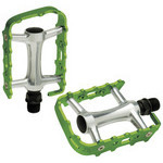 ケージ部分を美しいアルマイトカラーで仕上げたアルミペダル。