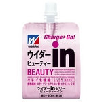 ウイダーinゼリー ビューティーイン ピーチ味キレイを楽しめ。ビューティーチャージビューティーインは、手軽に小腹を満たしながら、カラダの中からあなたのキレイをサポートします。キレイなパールピンクのビューティーインでビューティーチャージして、自分らしくイキイキとした毎日を楽しんでください。 栄養成分表(1袋180g当り)熱量:35kcal食物繊維:6.0gビタミンE:2.7〜4.4mg たんぱく質:0.5〜0.9gナトリウム:1〜20mgコラーゲンペプチド:500mg 脂質:0g ビタミンA:150〜450µgヒアルロン酸:5mg 糖質:15.0gビタミンC:80〜190mg 原材料名ピーチ果汁、エリスリトール、食物繊維(難消化性デキストリン)、砂糖、豚コラーゲンペプチド(ゼラチン)、香料、ゲル化剤(増粘多糖類)、乳酸Ca、クエン酸、V.C、塩化K、乳化剤、甘味料(アセスルファムK、スクラロース)、ヒアルロン酸、V.E、V.A