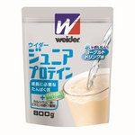 ジュニアプロテイン ヨーグルトドリンク味 800gこどものからだをつくるもの「プロテイン」プロテインとはたんぱく質のことです。たんぱく質は、からだのあらゆる部分のもとになる大切な栄養素。成長期のこどものからだ作りのためにプロテインでおいしくたんぱく質を補給しましょう。•カルシウム・鉄・ビタミンB群(7種類) こどもの成長に必要なカルシウムと鉄、たんぱく質の働きに必要な ビタミンB群(7種類)を添加しています。成長期のこどもには十分な栄養が必要です。ウイダー ジュニアプロテインは、からだの元になるたんぱく質をはじめ、カルシウム、鉄、ビタミンB群を配合しています。摂取タイミング(目安):朝食を食べられないとき・おやつに・スポーツ前後に栄養成分表(1食分20g当り)