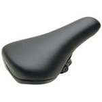 ミニルーミー サドル全長225mmとコンパクトながら、150mmとたっぷりのサドル幅と厚手のクッション材による乗心地の良い快適サドル。□仕様□・素材:PVC・φ7mmスチールレール+やぐら付・サイズ:L225xW150xH90mm・重さ:472g・カラー:ブラック