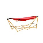 自立式ポータブルハンモック ゆらりB-1アウトドアのイメージにぴったりのイエローカラースタンド。キャンプ・BBQに持っていって、いつもと違った楽しみをしてみませんか?組立時間約3分!パッと広げて、ギュッと縮める!組み立て&収納超簡単!リュック式の収納バッグで、持ち運び楽々。ハンモック本体にジュースホルダー付き。ポリエステル製で軽くて耐久性抜群!アウトドア以外でベランダ、リビング、部屋のインテリアとしてもご使用いただけます。□仕様□・素材: ハンモック:ポリエステル スタンド:スチール 枕:PVC 収納バッグ:ポリエステル・サイズ(約):249x75.5x78cm・ハンモックサイズ(約):209x82.5cm・重さ(約):10kg・対象身長(約):180cm以下・耐久重量(約):100kg・セット内容 ハンモック スタンド 枕 収納バッグ・カラー:レッド※商品は性能向上などのため、一部仕様変更や外観を変更する場合があります。また実物とは色、柄等が若干異なる場合があります。あらかじめご了承ください。