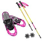 カラーコーディネートされたトレッキングポールとスノーシューのセット。