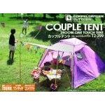 T2-299 2ルームワンタッチテントひとりでゆったり、ふたりでいちゃいちゃ。寝室とリビングが同時にひろがるワンタッチテント。■広い前室約235×130cmの広い前室空間がワンタッチで出現。左右に窓があり、風や光を取り込むことができる設計です。別売りのポールを使用すればタープとして拡張でき、影面積を拡張することも可能。■広い寝室一般的な2人用テントに使用されるサイズより少し大きい225×130cmの広い寝室。1人で贅沢に使うか、2人でいちゃいちゃ使うかはあなた次第。■コンパクトサイズ収納サイズは約68cm。荷物スペースの限られた軽自動車でも簡単に運ぶことができる大きさです。積載量の多いバイクであれば荷台に載せることもできます。■製品仕様カラー:パープル収容可能人数 :大人2名組立サイズ(外寸) :(約)W2350 × D2650 × H1300mmインナーサイズ:(約)W2250 × D1350 × H1100mm(寝室)耐水圧 アウター:2000mm フロア:2500mm収納サイズ :(約)680×170×170 mm重量(付属品含む): (約)5.2Kg材質 :フライシート:190Tポリエステルインナーテント:180Tポリエステル、メッシュ生地ポール:グラスファイバー、スチール付属品 ペグ、ストームロープ、キャリーバッグ、取り扱い説明書※設営所要時間は個人の習熟度などに左右されます。※製品等の色は、ご使用になるモニターや、設定によって若干の違いが発生する場合があります。※製品改良のため予告なくデザイン・仕様を変更する場合があります。