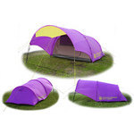タープリーテント T3-832〜4人キャンプにちょうど良い、広いタープスペース付きテント。タープスペース一体型構造 広いタープスペース(前室)を備えているため、別途タープテントを持参しなくても、快適なキャンプを行うことができます。また、フレーム3本だけのシンプルなトンネル構造で収納はコンパクト、設営も簡単です。□製品仕様□商品型番:T3-83カラー:パープルサイズ:(約)幅2600×奥行き3700×高さ1830mmインナーテントサイズ:内寸:(約)幅2250×奥行き2200×高さ1540mm 外寸:(約)幅2350×奥行き2400×高さ1550mm収納サイズ:(約)直径200x590mm重量:(約)7.2kg収容可能人数:4名(大人3名子供1名)耐水圧:2000mm材質:テント本体:190Tポリエステル アンダー(グラウンド)シート:PE ポール:グラスファイバー個装サイズ:210×210×600mm個装重量:7.7kg付属品:ポールx3本ペグストームロープキャリーバッグ取扱説明書※設営・撤収時には手袋を使用してください。※製品等の色は、ご使用になるモニターや、設定によって若干の違いが発生する場合があります。※製品改良のため予告なくデザイン・仕様を変更する場合があります。