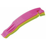 タイヤレバーシャープなレバー先端でひっかけ易いタイヤレバー。□仕様□・素材:エンジニアリングプラスチック・サイズ:18x122mm・重さ:34g(3本セット)・カラー:ピンク、イエロー、グリーン各1色※注意※プラスチック製タイヤレバーはリムを保護するため、力を入れすぎると破損します。