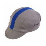 Premier サイクルキャップポリエステル100%の吸汗速乾素材。薄手ですので、ヘルメットの下にもゴワゴワせずかぶっていただけます。通気性も十分で、頭部の涼しさを確保し、汗止めにもなります。サイズ:フリーカラー:グレーXブルーライン