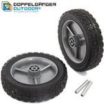 DOPPELGANGER OUTDOOR®フォールディングキャリーワゴンシリーズ用のスペアホイール(2個セット)です。ワゴンのホイールが消耗した状態では、クッション性、グリップ力、牽引、走行性能が低下します。消耗したホイールの交換にご活用ください。