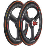 3スポークのカーボンコンポジット構造の20インチチューブラーホイールセット。