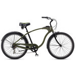 カップ ホルダー&ボトル オープナー付きパンサー■フレームサイズ:MEN'S(47.3cm)■タイヤサイズ:26インチ■適応身長:155〜185cmカラー:グリーン ■製品仕様フレーム SCHWINN クルーザー 26" アルミフレーム、カップ ホルダー&ボトル オープナー フォーク SCHWINN リジット スチールフォーク、1.1/8" フロントハブ アルミボディ、ナット式、36H リアハブ アルミボディ、ナット式、36H スポーク 14G ステンレス タイヤ SCHWINN クルーザー、26"X2.25"、米式バルブ リム アルミ、36H ボトム ブラケット アメリカンタイプ クランク ワンピース、46T、165mm チェーン KMC Z51 ペダル SCHWINN ボウタイ ヘッドセット スレッド、1.1/8" ハンドルバー クルーザー スチール、幅 700mm ステム アルミ クイル、25.4mmバークランプ、突き出し 100mm ブレーキ アルミ リニアプル ブレーキ レバー SCHWINN アルミ リア ディレーラー SHIMANO ターニー シフター SRAM MRX、グリップシフト リア スプロケット SHIMANO ターニー、14-34T、7スピード サドル SCHWINN クルーザー スプリング シートポスト スチール、27.2mm その他 フェンダー、センタースタンド 重量 17.1kg ■注意事項基本的には、組み立てた状態で発送いたします。梱包の都合により付属の工具で簡単な調整(ハンドルの固定等)をしていただく場合があります。あらかじめご了承くださいますよう、お願いいたします。*乗車前には、必ず点検をお願い致します。